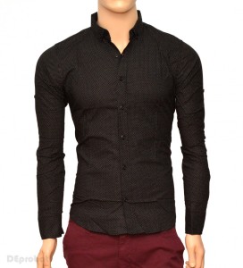 Camasa Neagra Cu Buline Camasa Slim Fit Camasa Trei Nasturi