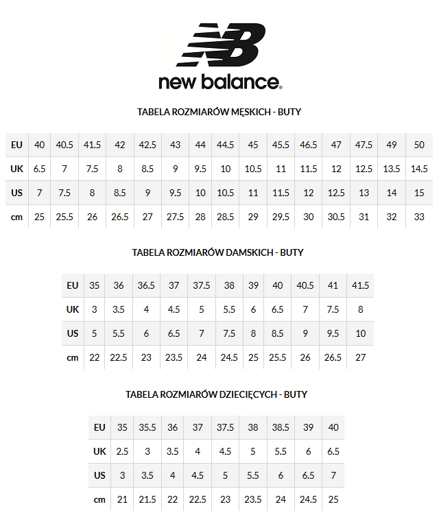 Tabela Rozmiarow New Balance Trygonsport Pl Sport Street